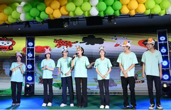 活动现场,志愿者们化身灵动可爱的“小动物”,倾情演绎了精心编排的儿童剧《动物魔法狂欢节》。欢快的节奏、活泼的舞姿、生动的互动,瞬间点燃了现场气氛。孩子们沉浸在奇幻的动物王国中,与“小动物们”亲密互动,欢声笑语此起彼伏,温馨与欢乐洋溢在整个会场。