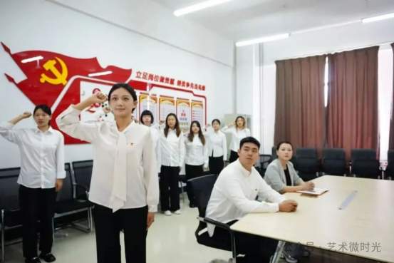 全体新团员宣誓,优秀团员代表郭晓莹领誓。