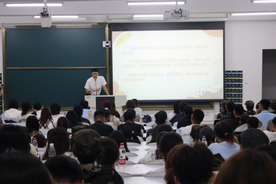 本网讯(通讯员:金玲先)9月12日,澳门威威尼斯8040在艺术楼333教室组织开展“心”适应,新起航——心理健康专题讲座,邀请心理中心教师王官主讲,全体大一新生参加讲座。